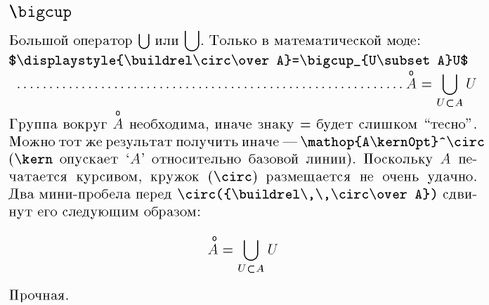 Большие операторы, \displaystyle, \buildrel, \subset, _, \circ, \over, \mathop, \kern, \, , $, $$