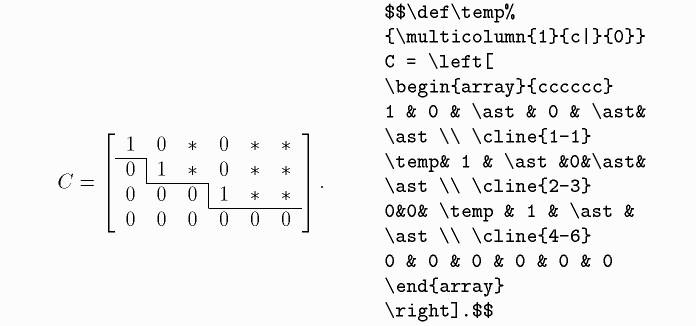 \cline, tabular, Пример использования \cline в tabular, array, \begin, \hline, &, \ast, \end, \def, \left, \right, \multicolumn, $, $$