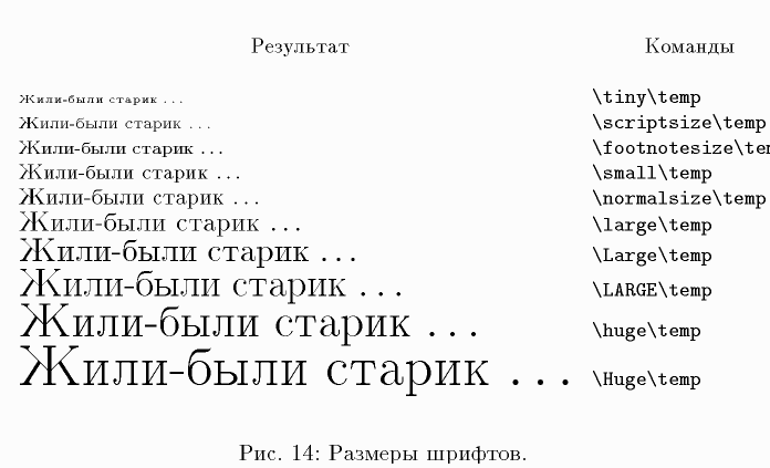 \tiny, \scriptsize, \footnotesize, \small, \normalsize, \large, \Large, \LARGE, \huge, \huge