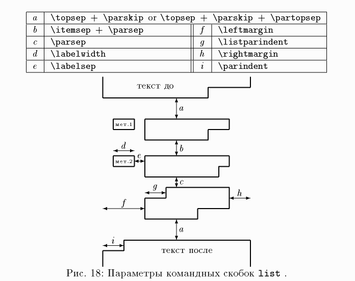 list, \topsep, \parskip, \partopsep, \itemsep, \labelwidth, \labelsep, \leftmargin, \listparindent \rightmargin, \parindent
