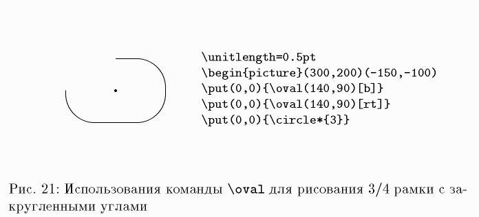 Рис.21. Использования команды \oval для рисования 3/4 рамки с закругленными углами