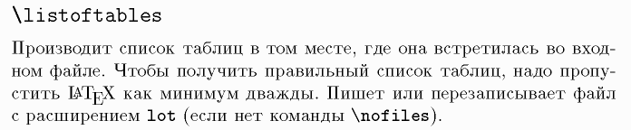 \listoftables