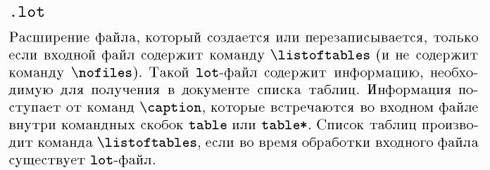 \listoftables