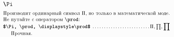 Строчные греческие буквы, Заглавные греческие буквы, \prod, \displaystyle, $, $$