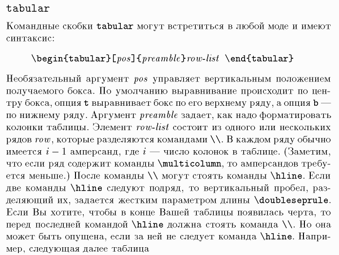 Командные скобки, \begin, \end, &, \multicolumn, \hline, \doubleseprule, Продолжение - 2-ая стр