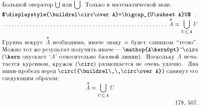 Большие операторы, \displaystyle, \buildrel, \circ, \over, \subset, _, \mathop, \kern, pt, ^, \, $