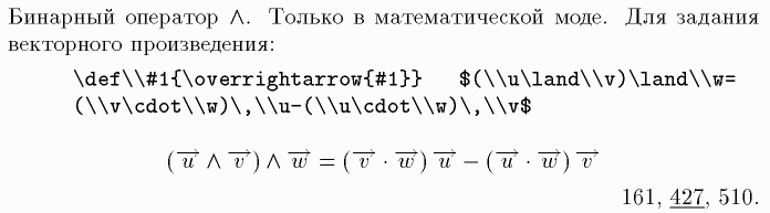 Альтернативные имена, Бинарные операции, \lor, \def, \overrightarrow, \cdot, #, $