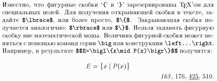 Открывающие ограничители, Ограничители, {, }, \{, \}, \rbrace, \big, \bigl, \bigr, \left, \right, \mid, $
