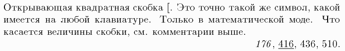 Открывающие ограничители, Ограничители, \lbrace, \rbrack, \big, \bigl, \bigr, \left, \right, $