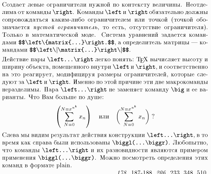 Открывающие ограничители, Ограничители, \right, \matrix, \big, \biggl, \biggr, plain, $