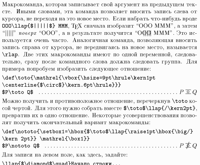 \rlap, \def, \mathrel, \vbox, \hsize, \hrule, \kern, \centerline, \circ, pt, \setbox, \raise, \big, \diamond, \quad, \break, \Sigma, $