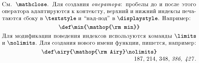 Бинарные операции, \mathclose, \def, \displaystyle, \textstyle, \min, \rm, \limits, \nolimits
