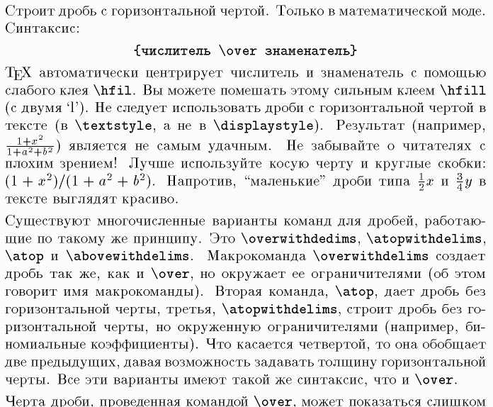 \hfil, \hfill, \textstyle, \displaystyle, \overwithdelims, \atopwithdelims, \abovewithdelims, \atop, \def, \sur, \above, $