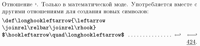Бинарные отношения, \lhook, \leftarrow, \joinrel, \relbar, \hookleftarrow, \quad, \hbox, to, \rightarrowfill, $