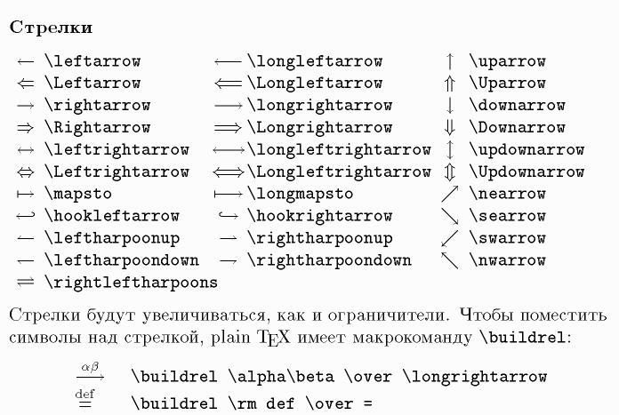 \leftarrow, \Leftarrow, \rightarrow, \Rightarrow, \leftrightarrow, \Leftrightarrow, \mapsto, \hookleftarrow, \leftharpoonup, \leftharpoondown, \rightleftharpoons, \longleftarrow, \longrightarrow, \Longrightarrow, \longleftrightarrow, \Longleftrightarrow, \longmapsto, \hookrightarrow, \rightharpoonup, \righttharpoondown, \uparrow, \Uparrow, \downarrow, \Downarrow, \updownarrow, \Updownarrow, \nearrow, \nwarrow, \searrow, \swarrow, \buildrel, \alpha, \beta, \over, \rm, $