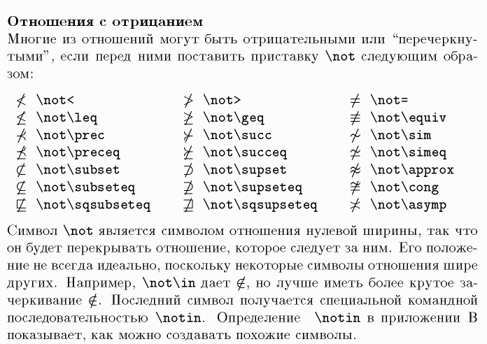 \not, \leq, \prec, \preceq, \subset, \subseteq, \sqsubseteq, \geq, \succ, \succeq, \supset, \supseteq, \sqsupseteq, \equiv, \sim, \simeq, \approx, \cong, \asymp, \in, \notin, $